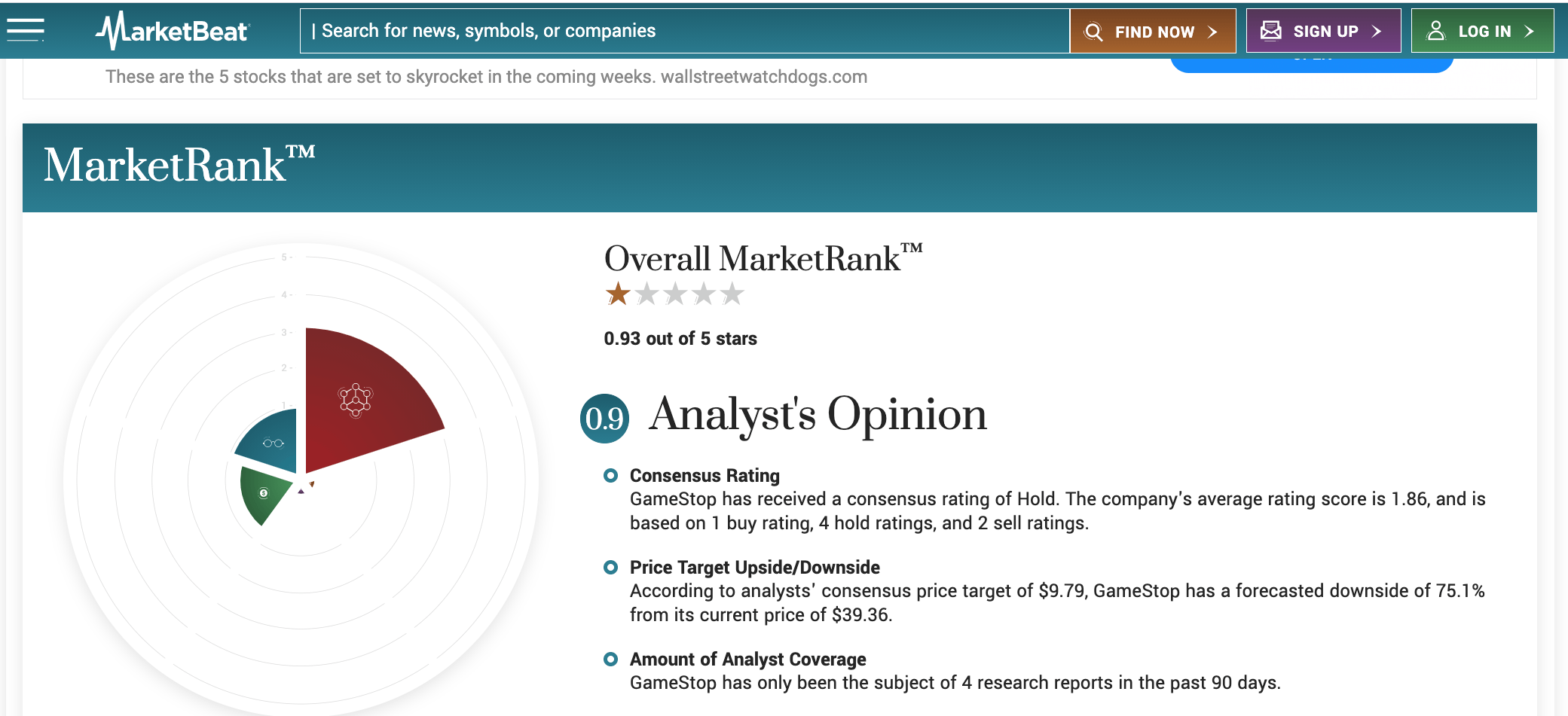 Check your The Next. Their GME share price forecasts range from 750 to 3650. 2 Wall Street research analysts have issued 12 month price objectives for GameStops shares.